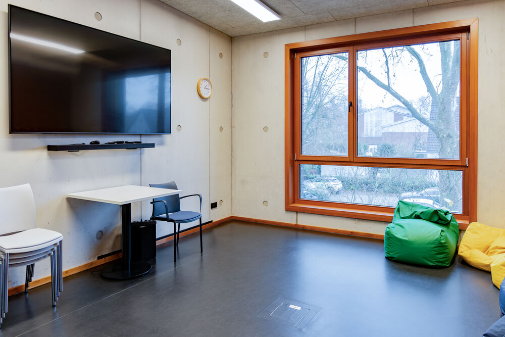 Der große Aufenthaltsraum des „Marcel-Callo-Haus“ kann schnell zum Kino werden. Über eine Leinwand mit Deckenbeamer und tollem Sound können die Kinder und Jugendlichen Filme schauen. Und mit Freundinnen und Freunden macht das gleich noch viel mehr Spaß!