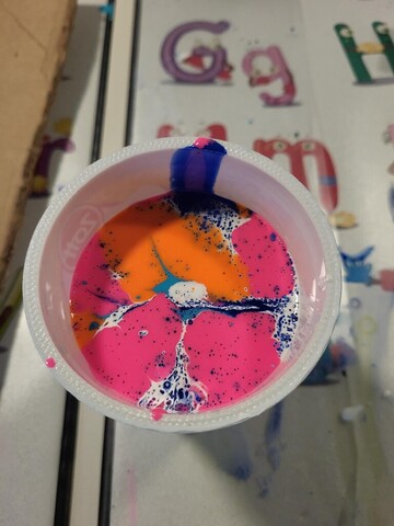 Acryl Pouring – Farben fließen und Kunst entstehen lassen (unter der Leitung von Anna Matzek und Claudia Wieser sind farbenfrohe Acryl Pouring-Werke mit ASMR-Effekt entstanden) Die Teilnahme war kostenlos, da das Programm durch den Kulturrucksack NRW gefördert wird.