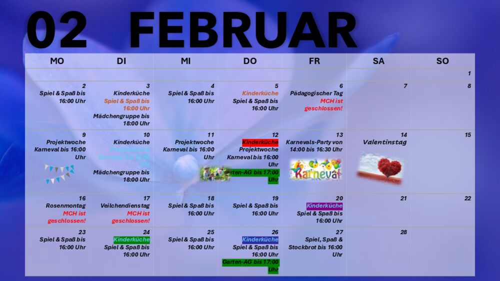 Die Terminübersicht für Februar 2026 gibt es hier als PDF zum Herunterladen.